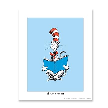 Amazon Com The Cat In The Hat Reading Blue Dr Seuss Art
